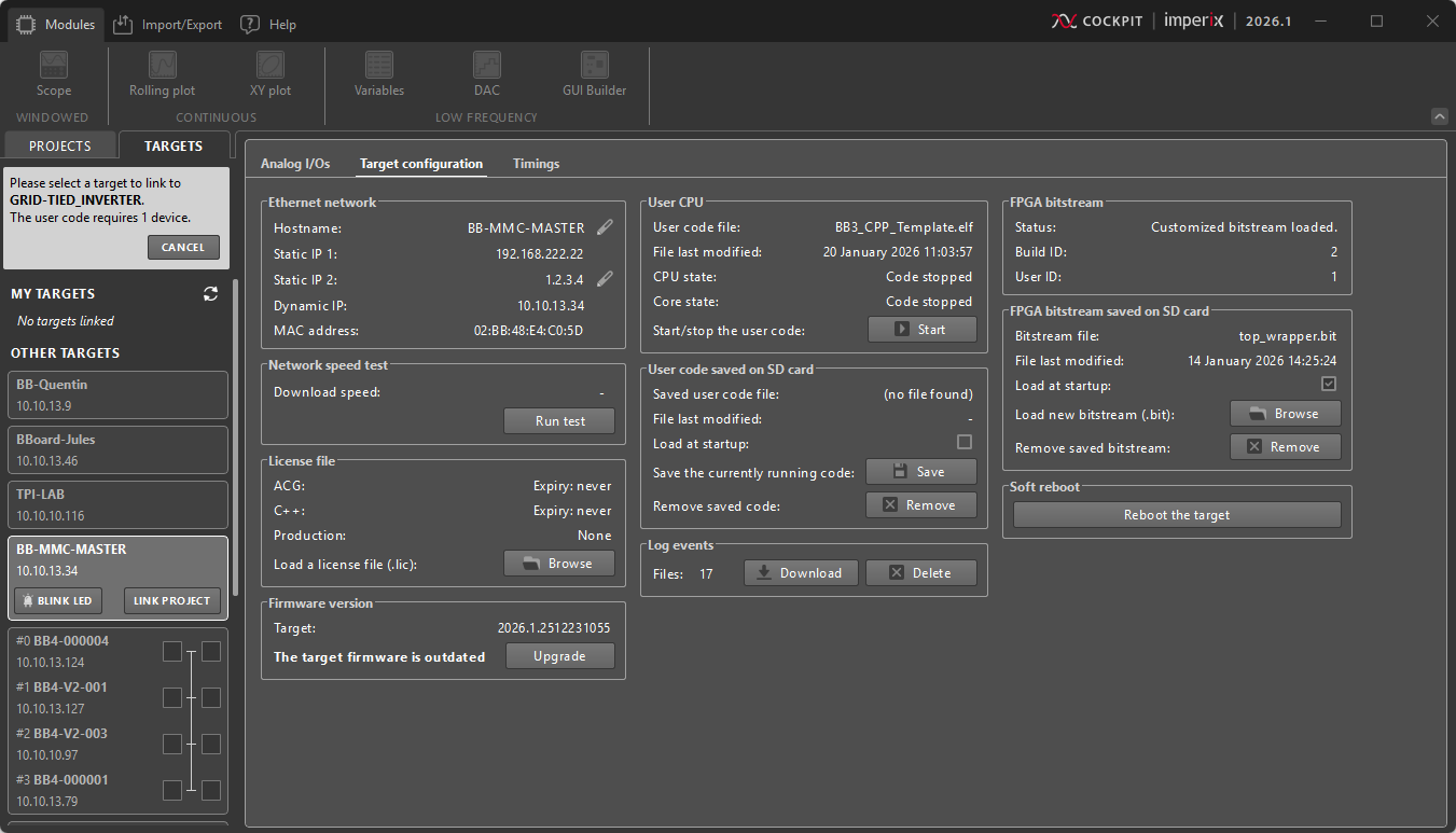 Configuring imperix controllers from Cockpit
