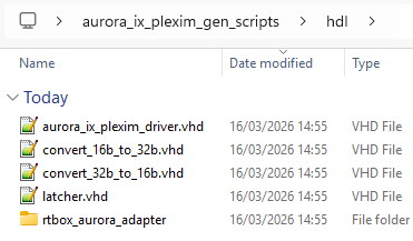 The aurora_ix_plexim_gen_scripts.zip archive from the page Aurora link with Plexim via SFP is used as an example for the following procedure. It contains two folders: