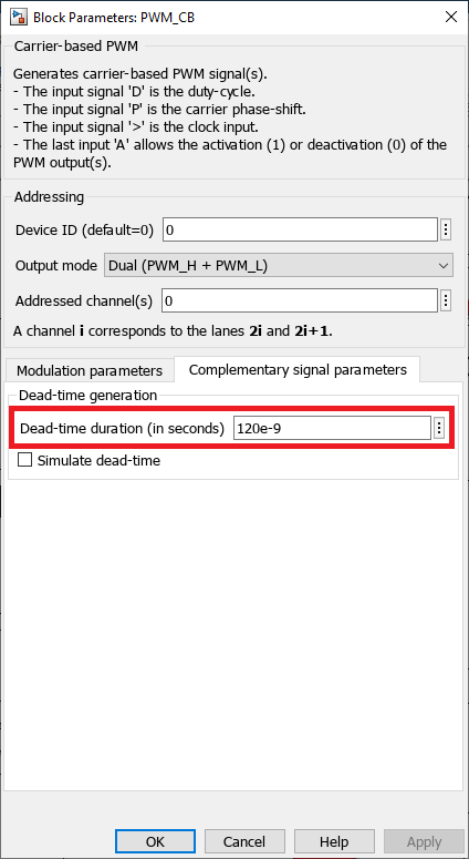 The implementation of a dead time in the gating signals is necessary to prevent shoot-through. Given that the Pulse Width Modulation (PWM) signals originate from an external controller, the user bears the responsibility for applying the appropriate dead time. The Minimum dead time for the PEB-800-40 is 120 ns.