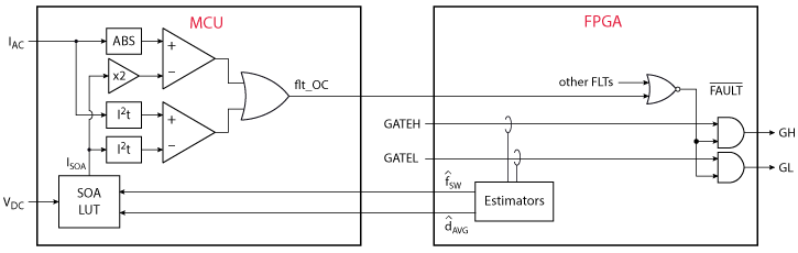 | Over-current | CURR | Long-term : |IAC| > |ISOA(FSW, VDC, DAVG)| (see Smart SOA protections) Short-term: |IAC| > 2 x |ISOA(FSW, VDC, DAVG)| (see Overload capability) |