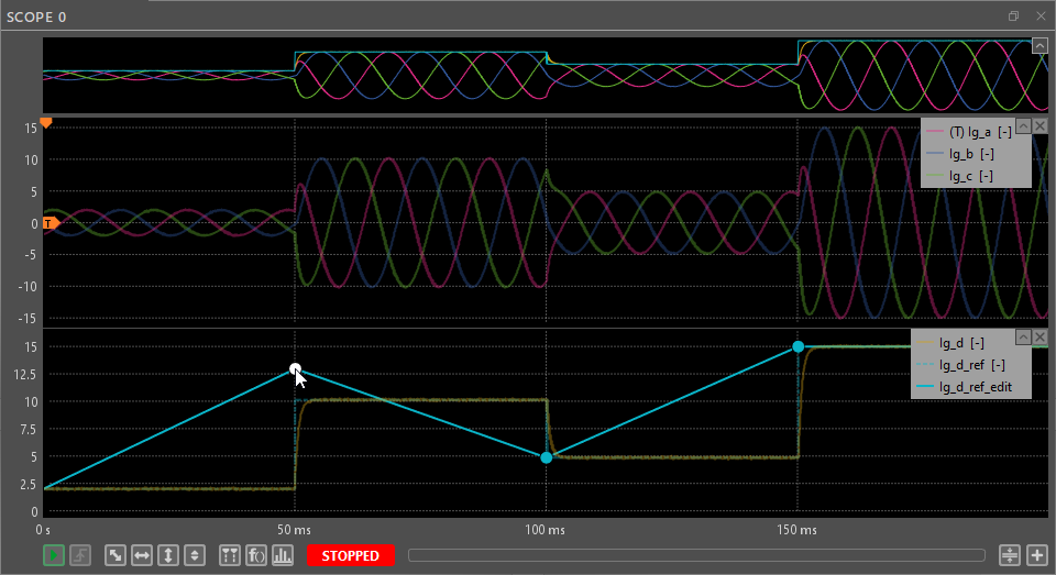 In the following example, three transient events are applied to Ig_d_ref. It can be seen that these events are generated simultaneously with the acquisition of Ig_a, Ig_b, Ig_c, and Ig_d.