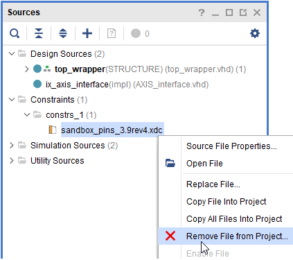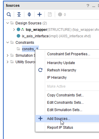 constraints/) to the project’sconstraints/folder, replacing the old file - In Vivado, go to the Sources tab