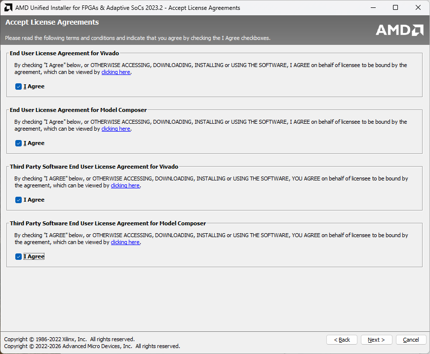 - Accept the license agreements.