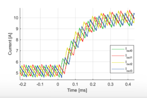 For instance, with an input voltage of 100 [V], an output voltage of 20 [V], and a frequency of 20 [kHz], using an off-the-shelf inductor of 2.36 [mH], the current ripple would have a magnitude of \(\Delta I_{out} = 0.34\) [A]. Adding an output capacitance of 2 [mF] would then result in an output voltage ripple magnitude of \(\Delta V_{out} = 1\) [mV].