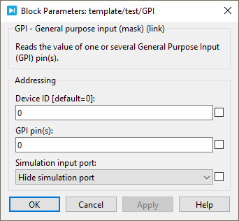 • Simulation input port defines if the target inport is displayed or not. This parameter is only used in simulation.