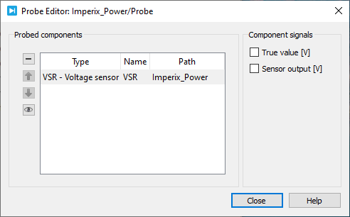 True value [V]monitors the true value of the measured voltage between the two electrical ports in Volt.Sensor output [V]monitors the physical output of the voltage sensor in Volt.