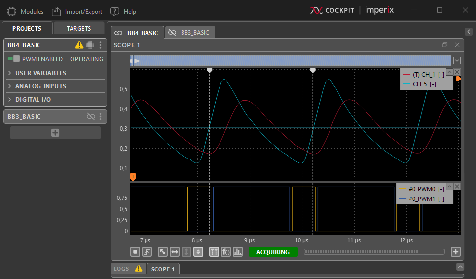 During operation, Imperix Cockpit allows observing, editing and logging any variable. This facilitates the rapid debugging and tuning of any converter control algorithms.