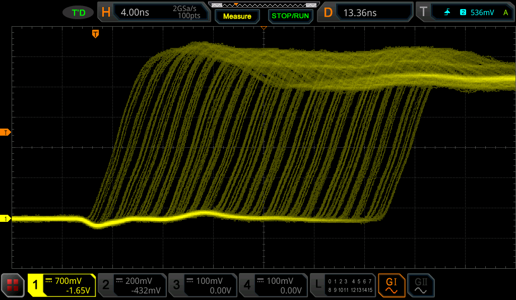PWM signals are also captured right after the modulators and displayed alongside measurements, with a time resultion eqiuvalent to 250MHz.