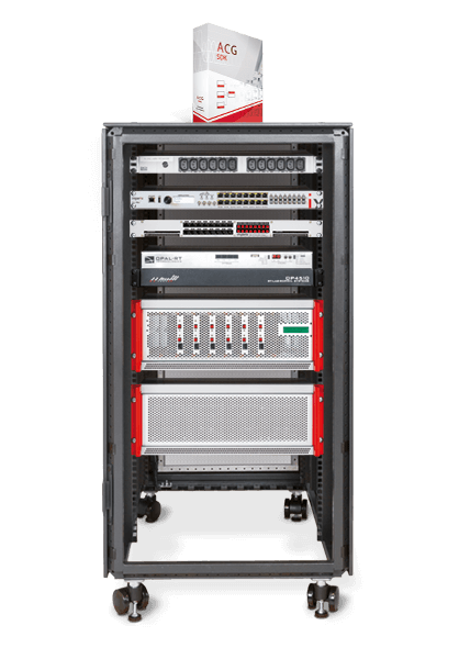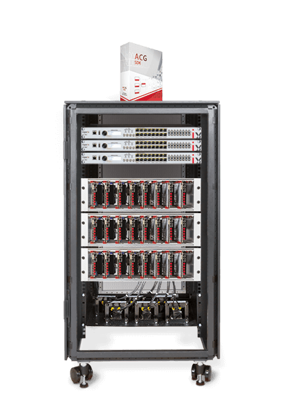 Unlike the teaching kits, the equipment is rack-mounted in a cabinet with wheels. Thus, it can be easily moved around in a laboratory. The extra space at the bottom of the cabinet provides flexibility for the future and allows mounting more equipment if needed.
