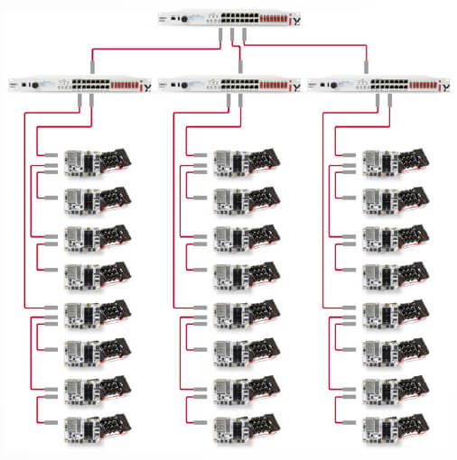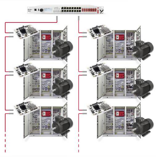 When the SFP fibers and the RealSync protocol are used for horizontal communication, all converter control units are natively synchronized. Besides, much faster – and full deterministic – data transfers are also guaranteed.